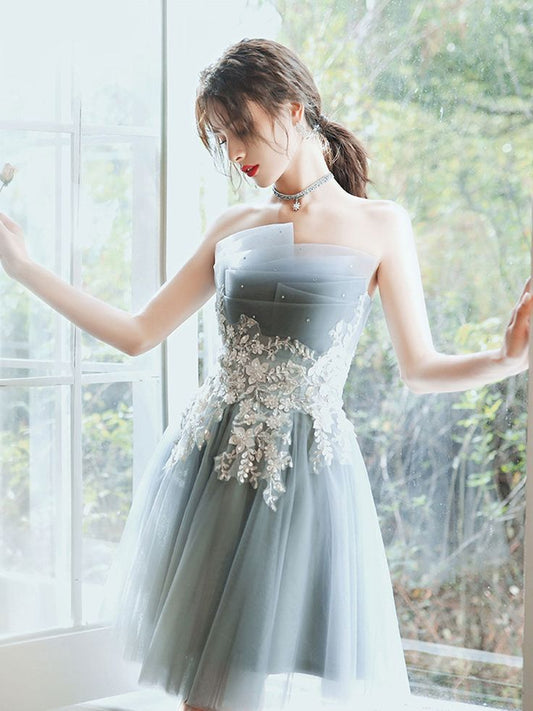 Gray Short Prom Dress, Gray Cute Homecoming Dress S3217