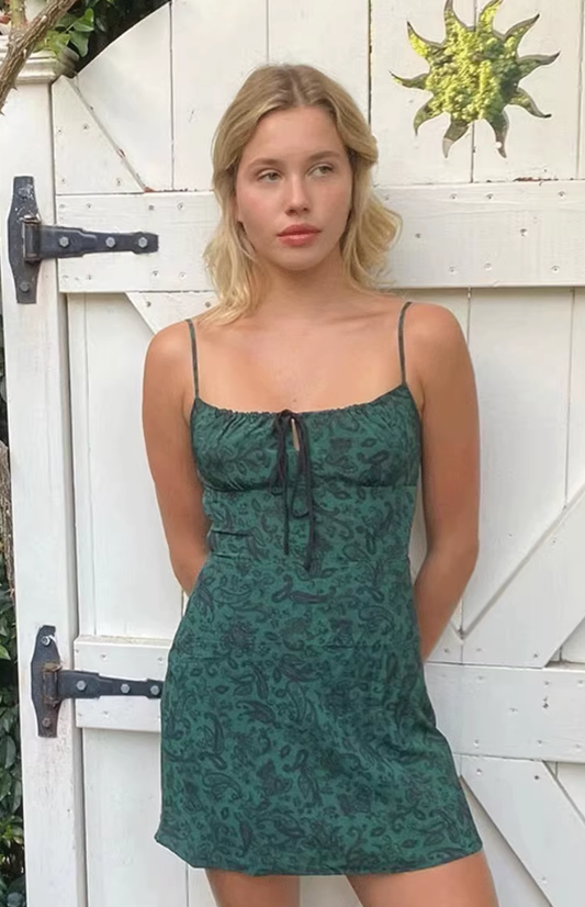 green chic suspender dress seaside holiday long dress S6139