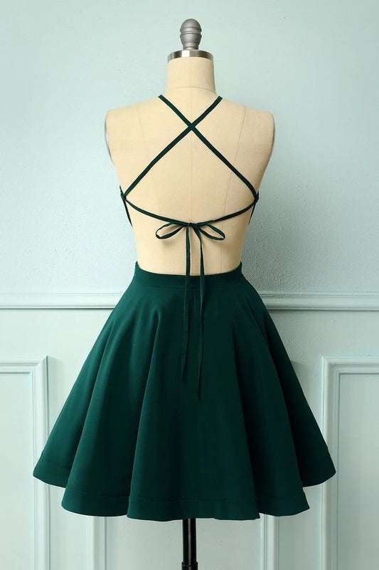 Green Halter Short Homecoming Dress, A Line Sleeveless Graduation Dress S2995