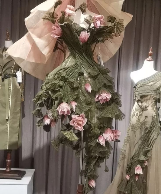 Green forest tie suspenders waist slim irregular skirt long skirt homecoming dress R2787