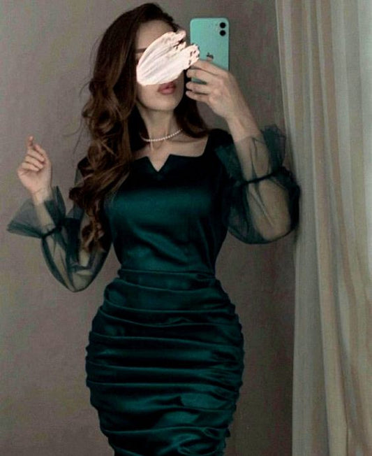 Green rich lady v-neck tube top dress female temperament dress backless sexy short hip skirt R3950
