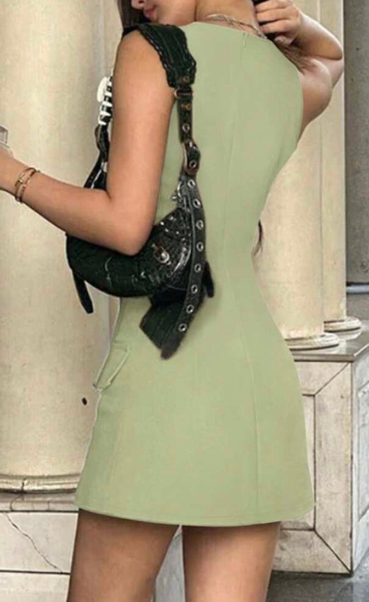 Green round neck sleeveless waist slim A-line short skirt homecoming dress R3836