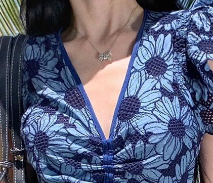 Heavy blue daisy embroidery V-neck dress sweet short skirt French waist lace A-line skirt R0184