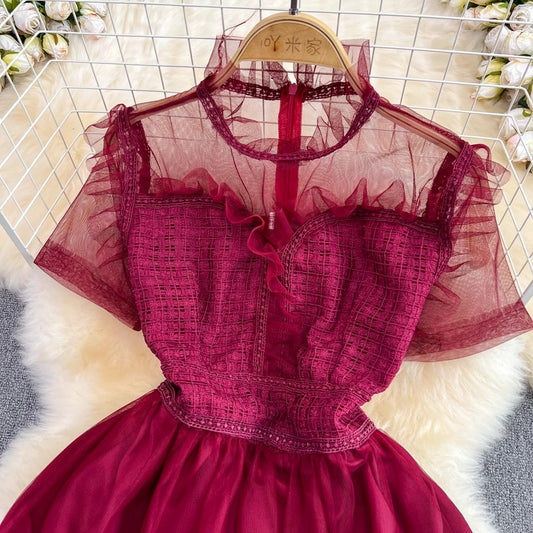 A-Line Burgundy Evening Dresses Long Tulle Prom Dress S1243