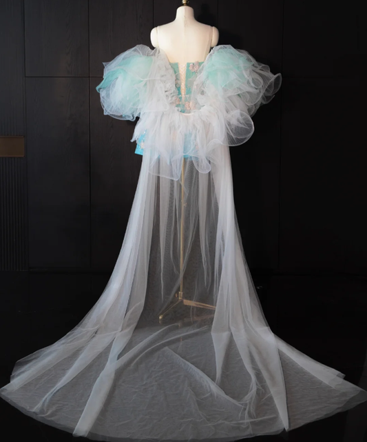 Lake Blue Fairy-Style Fitted-Waist Slim-Fit Hip-Hugging Mermaid-Length Prom Dress R6504