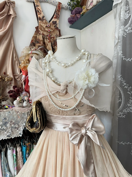 Light champagne color slim waist elegant ball gown, bridesmaid dress R6119