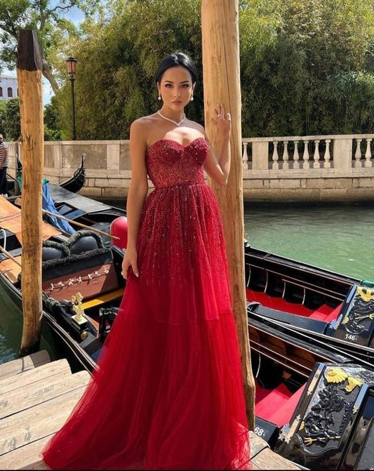 A-line Sleeveless Tulle Prom Dress With Lace Appliques Long Prom Dress Party Dress S6454