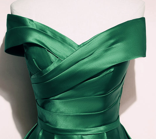 A-line Simple Green Satin Prom Dress Evening Dress, Floor Length Formal Dresses S3617