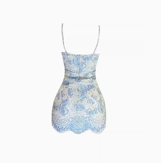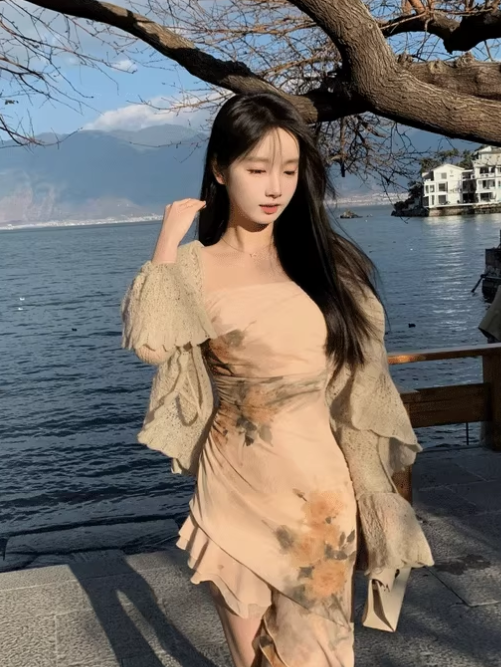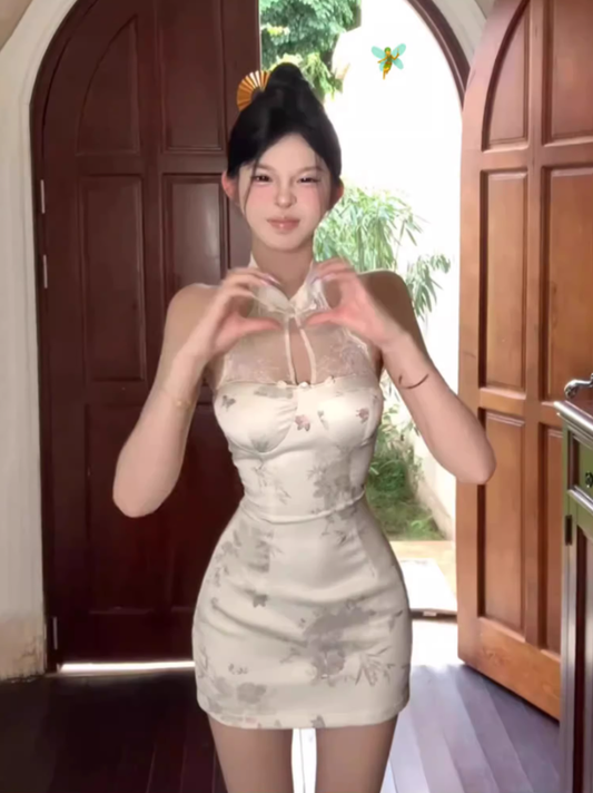 New Chinese style lace cheongsam skirt 2025 pure desire sleeveless halter neck printed hip skirt R1055