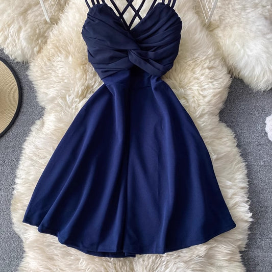 new styl suspender skirt fashionable V-neck sleeveless backless a-line dress S4282