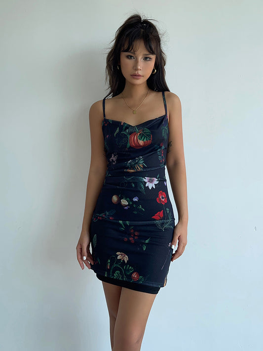 American retro pure desire hot girl small floral slut collar mesh suspender skirt waist hip dress R3085