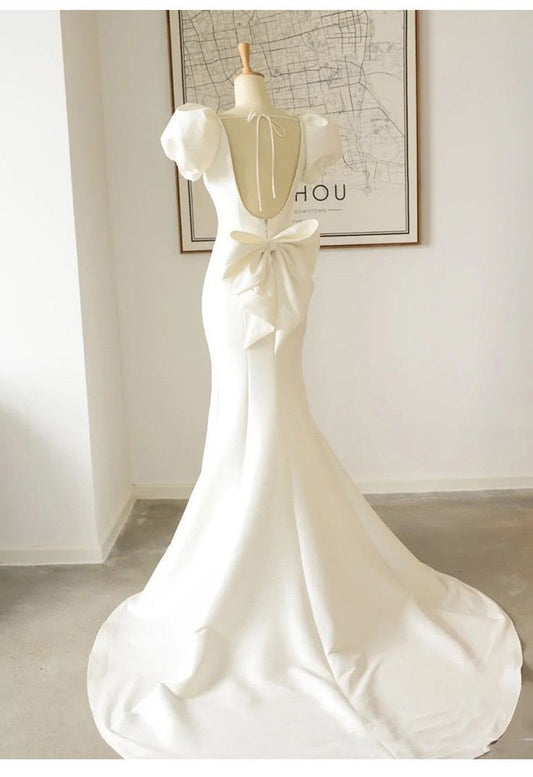 puffed Sleeve Evening Dress, White Mermaid Evening Dress ,custom Made S3353