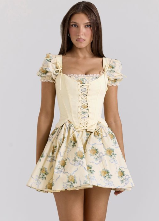 Apricot suspender skirt with floral pattern waist princess puffy skirt homecoming dress R2963