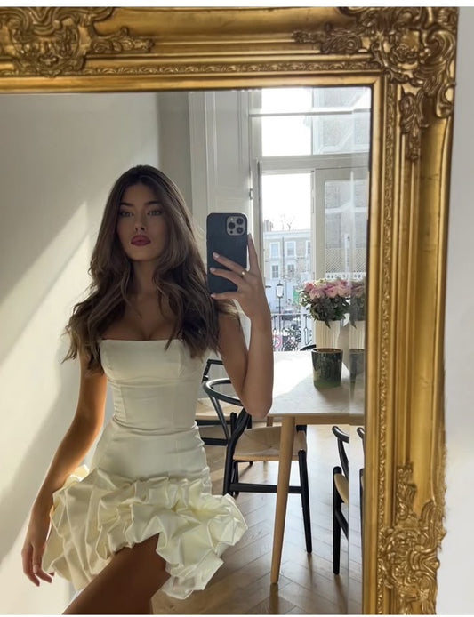 Apricot suspender A-line ruffle design top hip sexy long skirt suit homecoming dress R4854