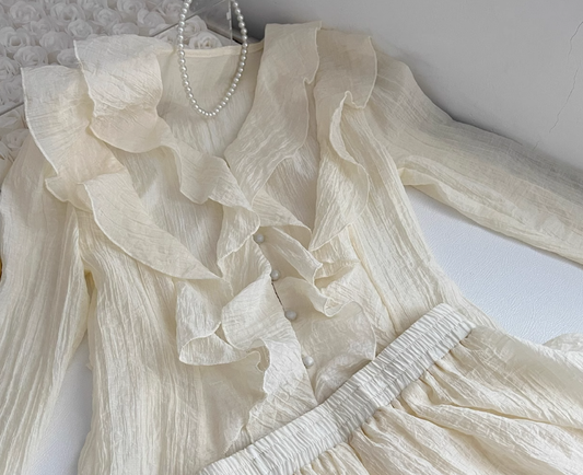 Autumn Korean style sweet long-sleeved shirt suit French style high waist skirt two-piece suit R0061