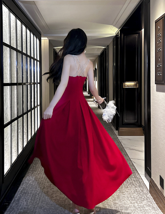 Backless halter neck top 2025 hip-wrapped holiday maxi skirt suit R1397