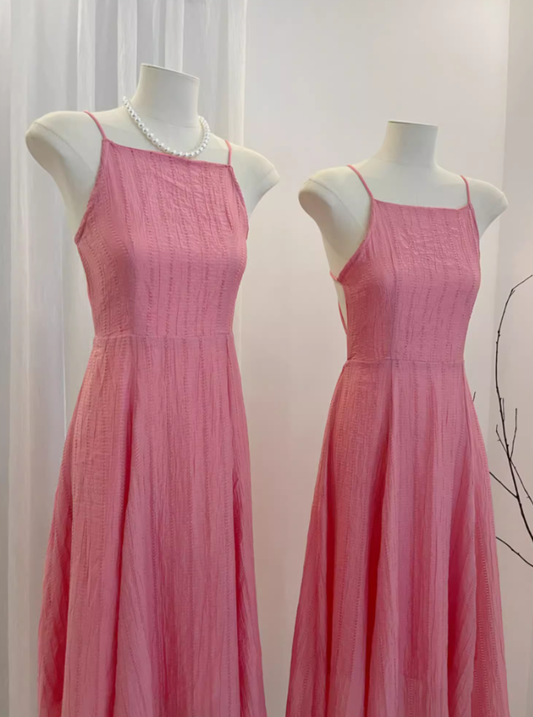 2025 new summer light peach pink sleeveless large swing backless holiday fairy back lace-up dress R0302