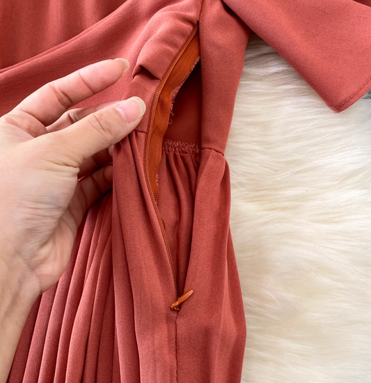 2025 new V-neck short-sleeved dress slim fit temperament waist tie big swing pleated long skirt R0345