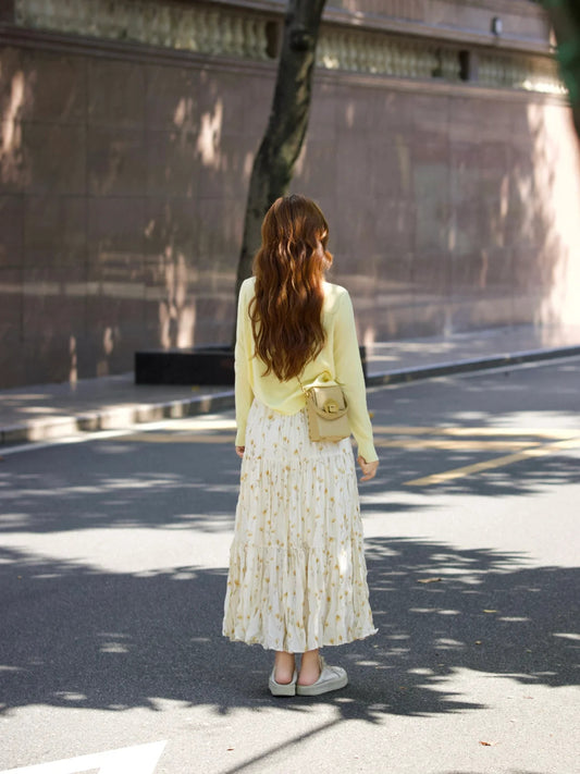2025 new women's suit knitted cardigan beautiful floral skirt two-piece suit R0708