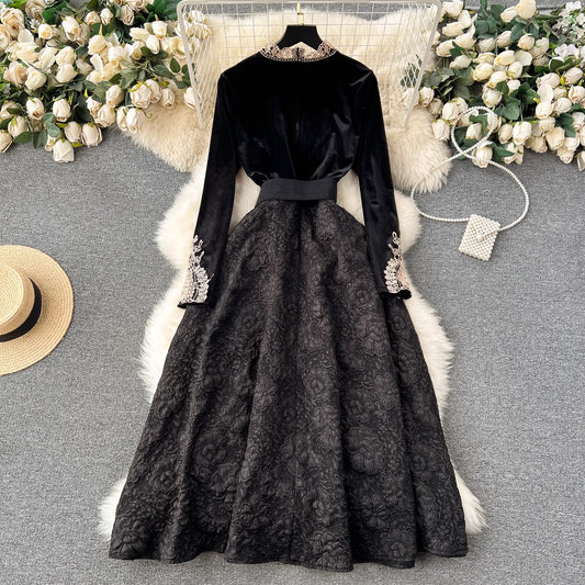 Retro velvet butterfly dress elegant V-neck long party dress S6105