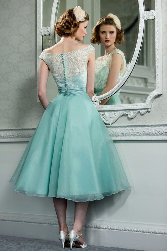 Retro Vintage Style Lace Organza Tea Length Wedding Prom Formal Dress S2652