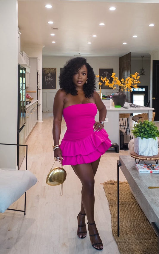 Rose red tube top waist slim cake skirt short skirt homecoming dress R5486