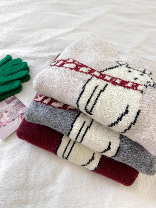 round neck cute cartoon embroidery design long-sleeved knitted sweater S4683