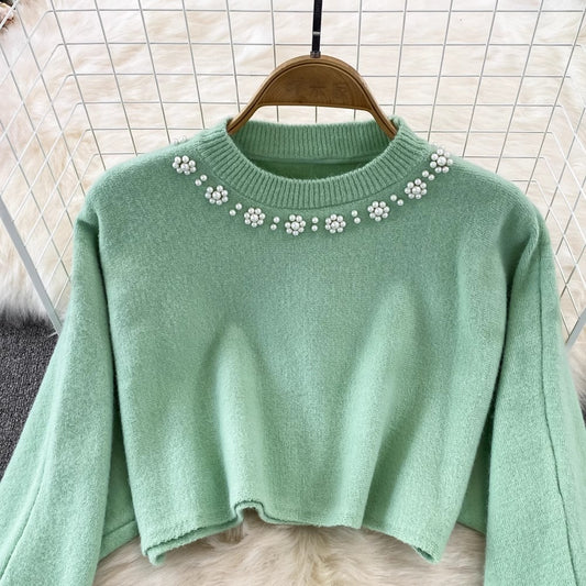 round neck beaded sweater two-piece hot girl knitted vest dress for women S4116