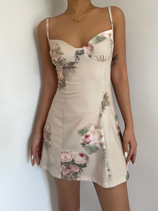 Rose suspender dress summer slim temperament sleeveless skirt waist a-line short skirt R3031