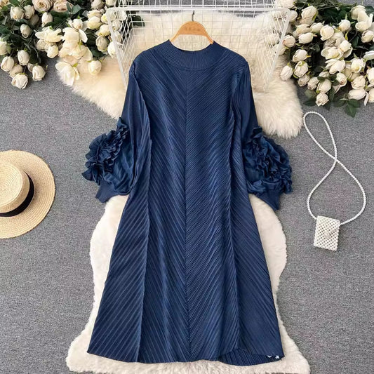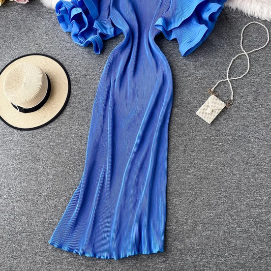 ruffled pleated dress floor-length and elegant long skirt S4286