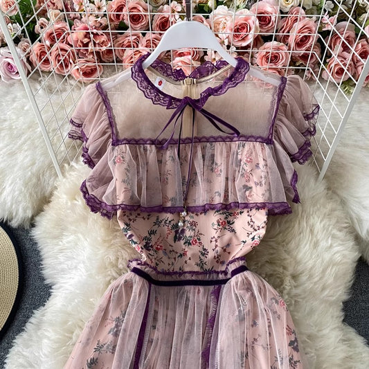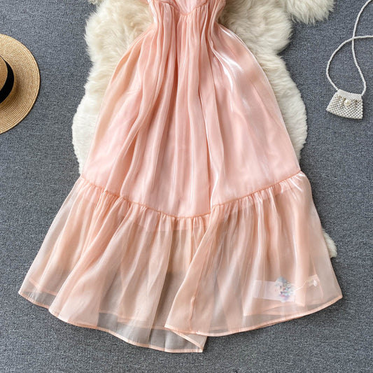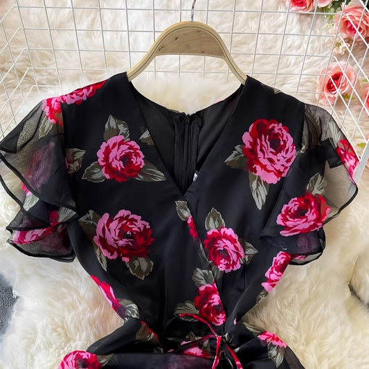 Ruffled floral suspender dress for women summer new long party dress S5811