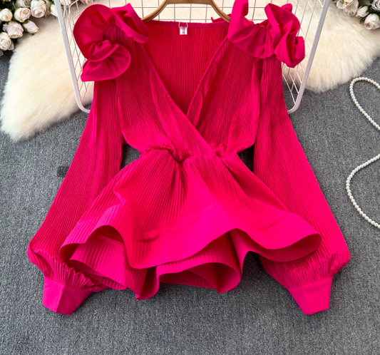 Ruffled waist shirt 2025 niche design three-dimensional petal waist cover meat slim top trend R0390