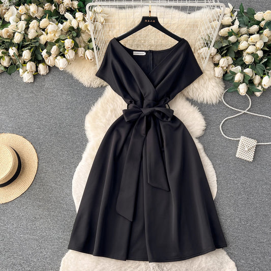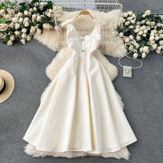 Banquet high-end palace style dress temperament V-neck waist slimming exquisite dress R2148