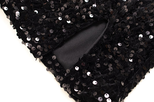 Barbie hottie hip skirt black spring and autumn new tight sexy short skirt sequin tube top dress R0095
