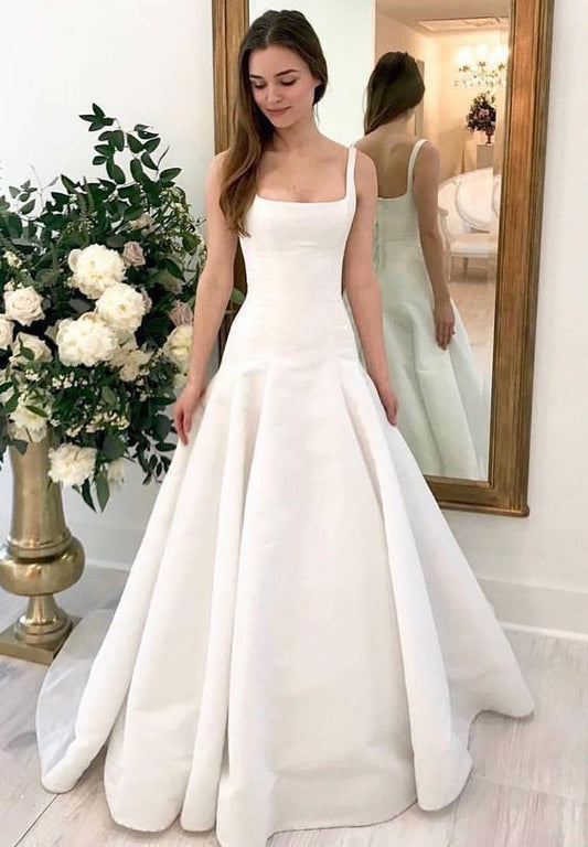 Sexy Backless Square Neck Wedding Dress Simple Wedding Dress S5104