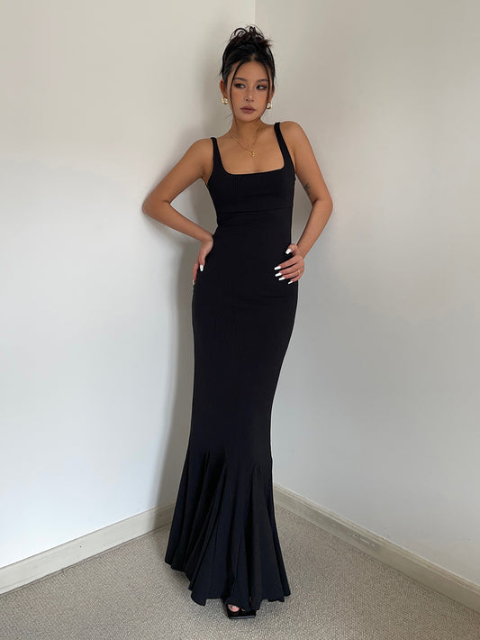 Sexy backless square neck black dress for women mermaid long dress S5865