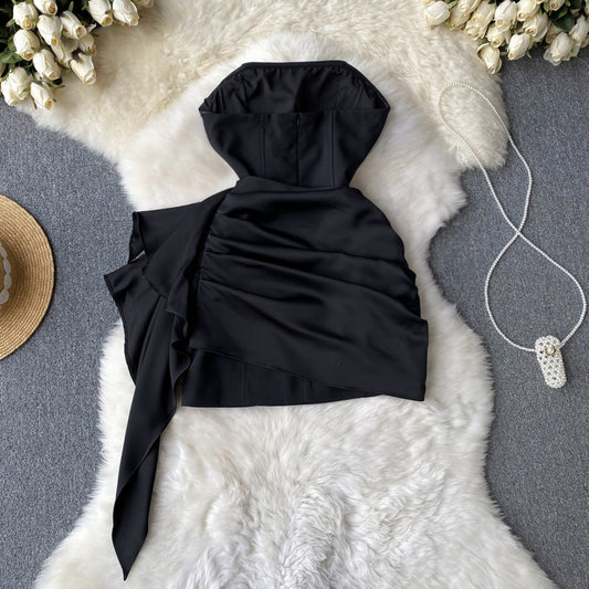 Sexy pure desire style irregular ruffled tube top dress temperament Hepburn style evening dress R2298