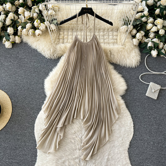 Beach resort long dress with a sense of atmosphere, slim waist and beautiful suspender dress R1577