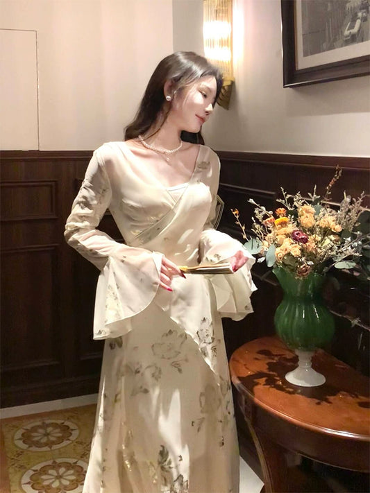 shimmering printed chiffon dress women 2025 long evening dress S6043
