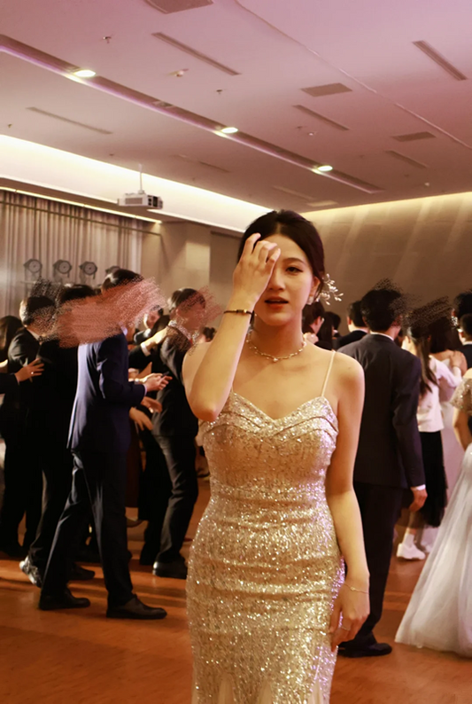 Silver Strap Sequined Waist Slim Fit Hip Fishtail Maxi Ball Gown R6107
