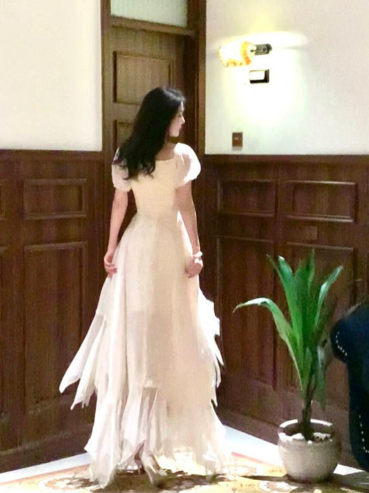 Square Neck Puff Short Sleeve A-line Puff Dress S4448