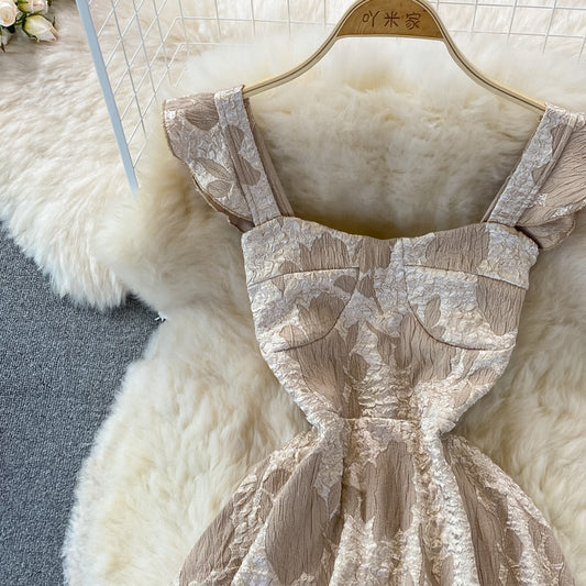 Square neck polka dot suspender dress women's summer French retro skirt R5028