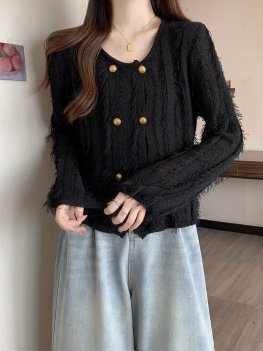 tassel knitted long sleeve cardigan sweater jacket S3408