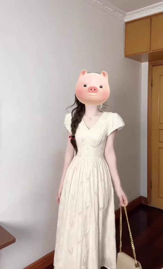 Temperament white v-neck puff sleeve dress female 2025 new beautiful waist slimming a-line long skirt R0478