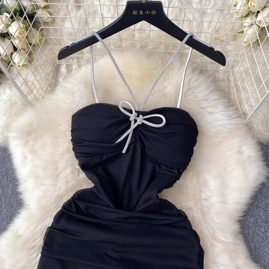 tube top halter neck suspender dress pleated tight short skirt S4634