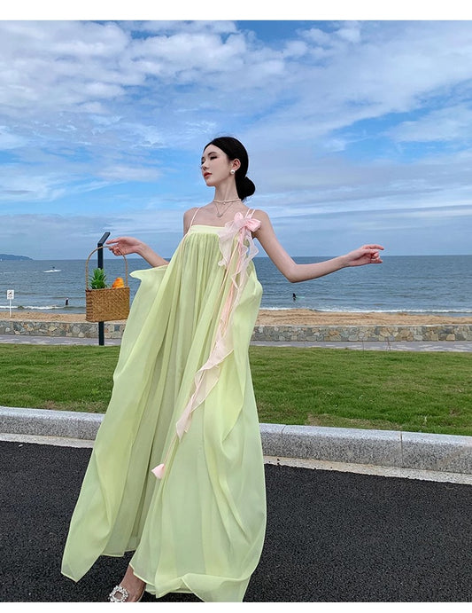 Tube Top Suspender Dress French Lady Style Waist Slimming Medium Length A-Line Printed Dress R0325