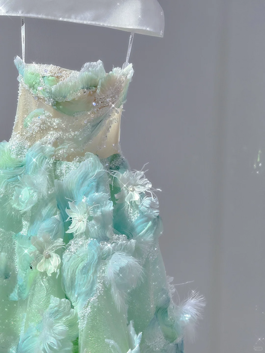 Turquoise suspender bright diamond design three-dimensional embellishment design fresh short skirt homecoming dress R4193