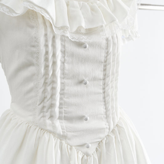 Tutu skirt new style short-sleeved heavy-duty dress slim tea break French sweet little white dress R0067