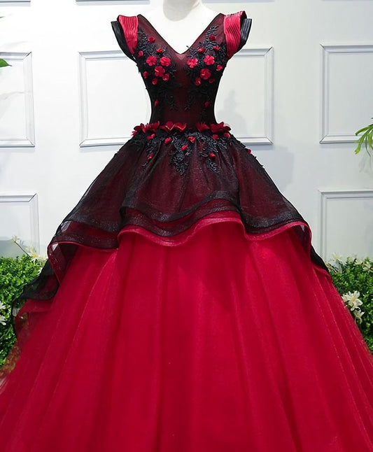 Unique V Neck Tulle Long Prom Dress, Evening Dress S5195