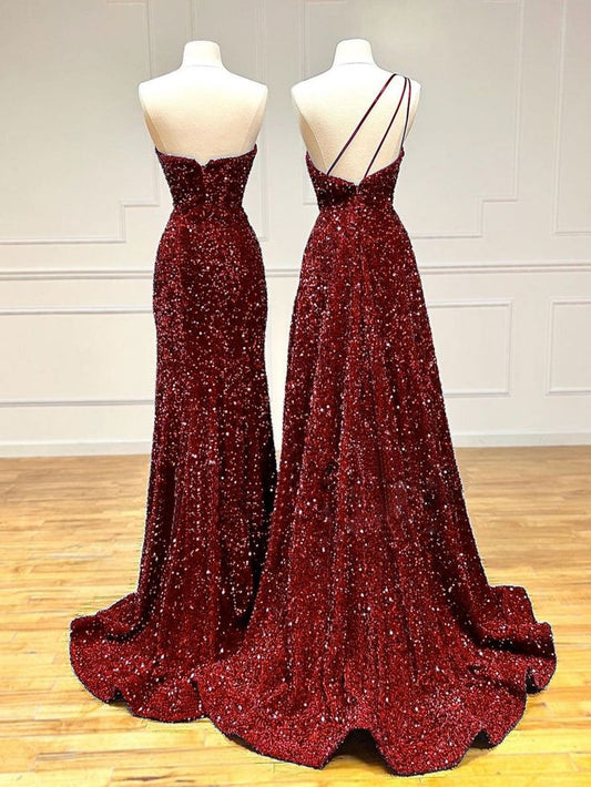Unique Velvet Sequin Mermaid Burgundy Long Prom Dress, Burgundy Formal Evening Dress S3572